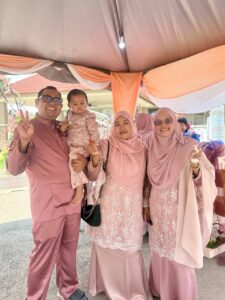 Rombongan keluarga pengantin perempuan yang tampil anggun mengenakan busana sedondon berwarna hijau tiba dari Simpang Ampat, Alor Setar, disambut mesra oleh keluarga pengantin lelaki yang segak berpakaian tema dusty pink.